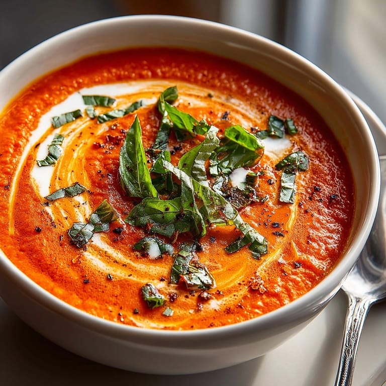 Pin This Creamy Roasted Garlic Tomato Soup offers the kind of soothing comfort that always wins over friends and family. Fresh, ripe tomatoes and a whole head of garlic bask in the oven until they're caramel-sweet, then get whizzed together with silky cream and bright basil. Every spoonful is luxuriously smooth, bursting with warmth and savory essence—a homemade bowl that blows any store-bought version out of the water.