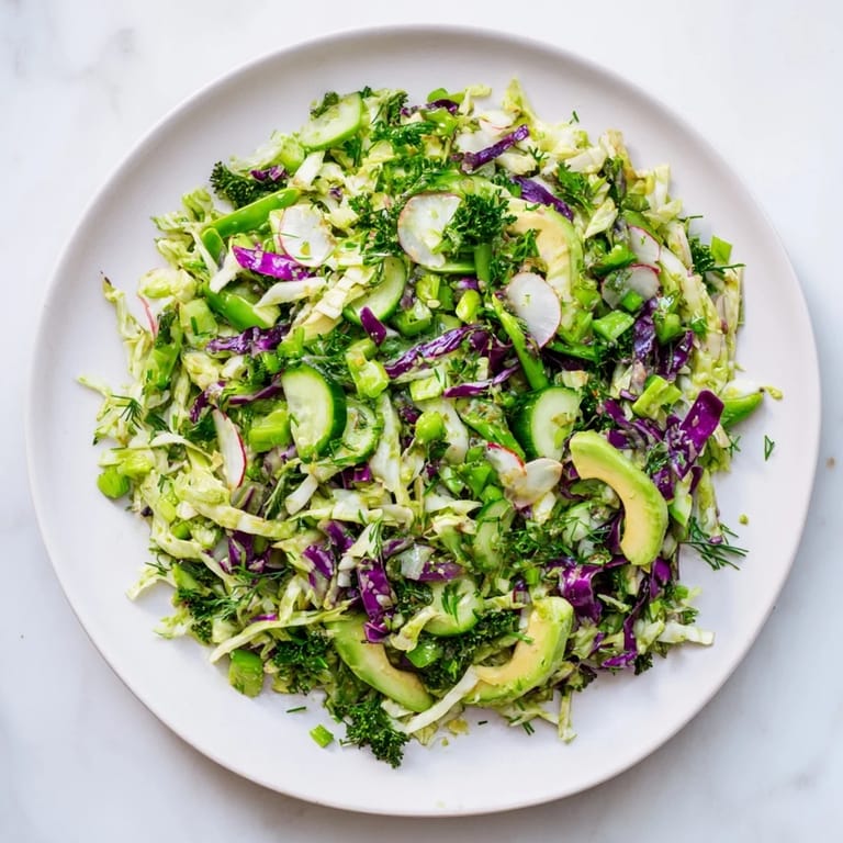 Pin I discovered this salad on a Monday morning when my kitchen felt a bit too quiet and my body was asking for something bright. There was a bag of mixed greens going soft in the crisper, and instead of tossing them, I started shredding everything in sight—cabbage, kale, whatever looked promising—and suddenly my cutting board was a garden of color. That first bite, with the lemon dressing hitting the crispness of raw vegetables, felt like pressing pause on everything hectic. It became the thing I make when I need to reset.