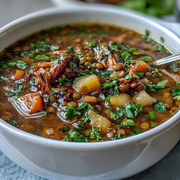 There's something about combining that smoky ham broth with earthy lentils that just feels right when the leaves start changing color. The soup doesn't feel heavy despite being substantial—the lemon wedges and fresh parsley keep it bright and balanced, which I didn't expect the first time I made it. It's the kind of dish that works for a casual Tuesday dinner or when you're feeding people who matter to you.