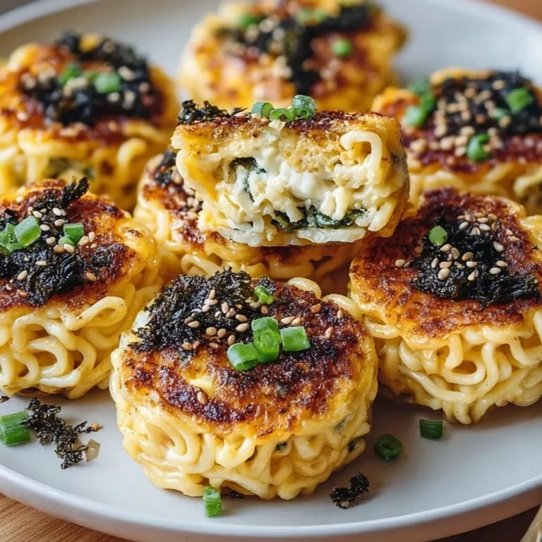 Pin These savory ramen egg bites are the ultimate quick comfort food with their creamy texture and hits of umami. They deliver that beloved ramen shop satisfaction in a handheld form—think silky egg custard hugging ramen noodles, pops of scallion, and a golden finish. Whether you need an easy appetizer, a protein-packed snack, or something special for your bento box, these bites are made to impress while keeping things simple in the kitchen.