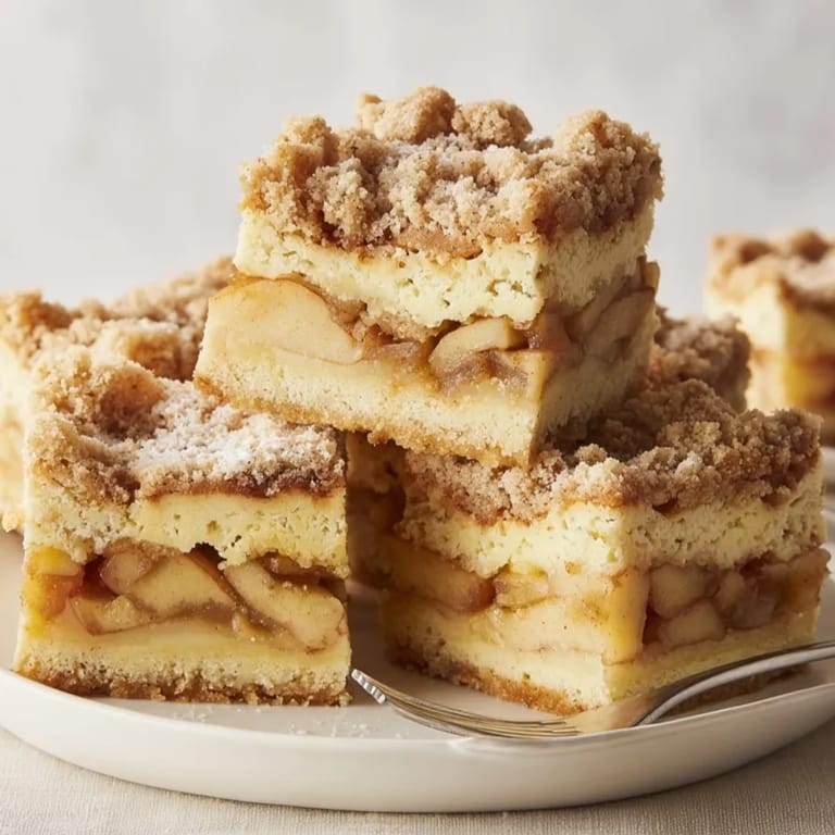 Pin My favorite part is the ricotta layer it makes these so creamy without being too sweet. I remember making this with my mom after picking apples together, and we always sampled the crumb topping straight from the bowl. These bars taste like home.
