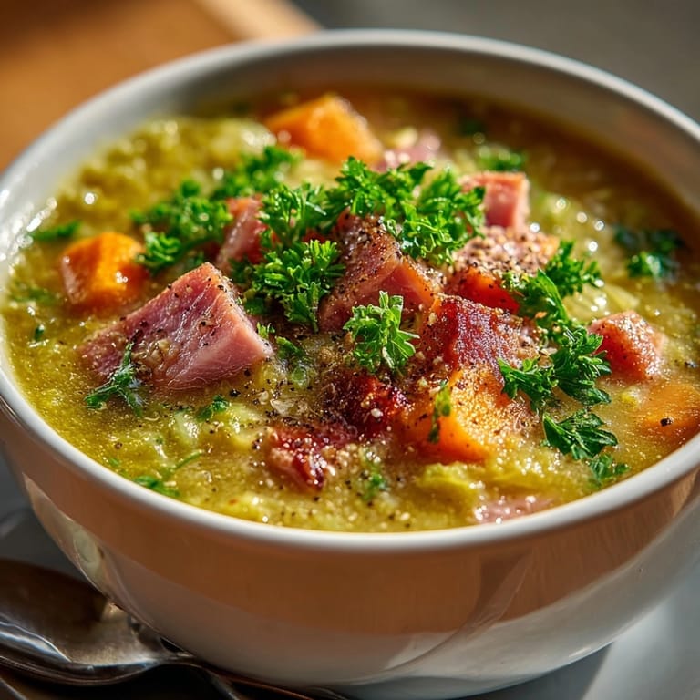 Pin The humble split pea has been a staple in my kitchen for years, but it was only when I started pairing it with quality smoked ham that this soup became transcendent. My grandmother always said the secret was in the slow simmer—rushing split peas results in an uneven texture and less developed flavor profile. She was absolutely right.