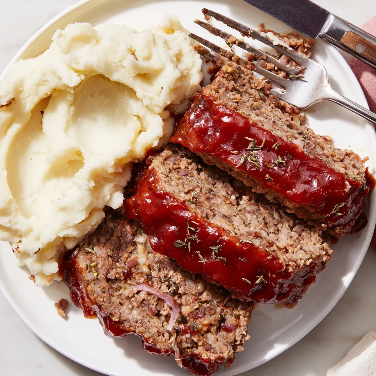 Pin With its balance of rich, savory meatloaf and creamy mashed potatoes, this recipe brings nostalgia and comfort to the dinner table. Easy to prepare yet full of flavor, Classic Meatloaf & Mashed Potatoes is a beloved dish that will keep everyone asking for seconds.