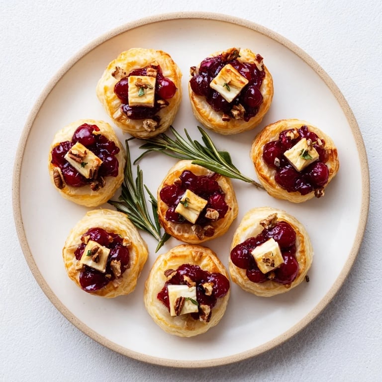 Pin Flaky, golden puff pastry cups filled with creamy Brie and tangy cranberry sauce—these elegant bites are the ultimate easy appetizer for any gathering.