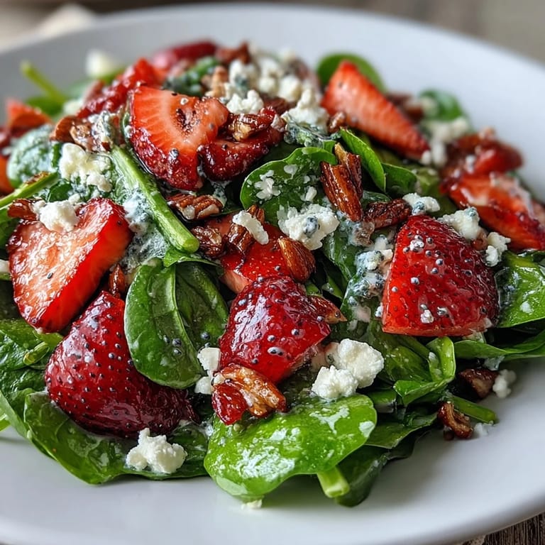 Pin My neighbor dropped by one afternoon with a container of the most beautiful strawberries I'd ever seen, still warm from the farmers market. She mentioned offhandedly that she'd been making this spinach salad all spring, and the way she described the poppyseed dressing made it sound almost magical. I was skeptical about mixing fruit and cheese in a salad—until I tasted it and understood why she'd been making it weekly.
