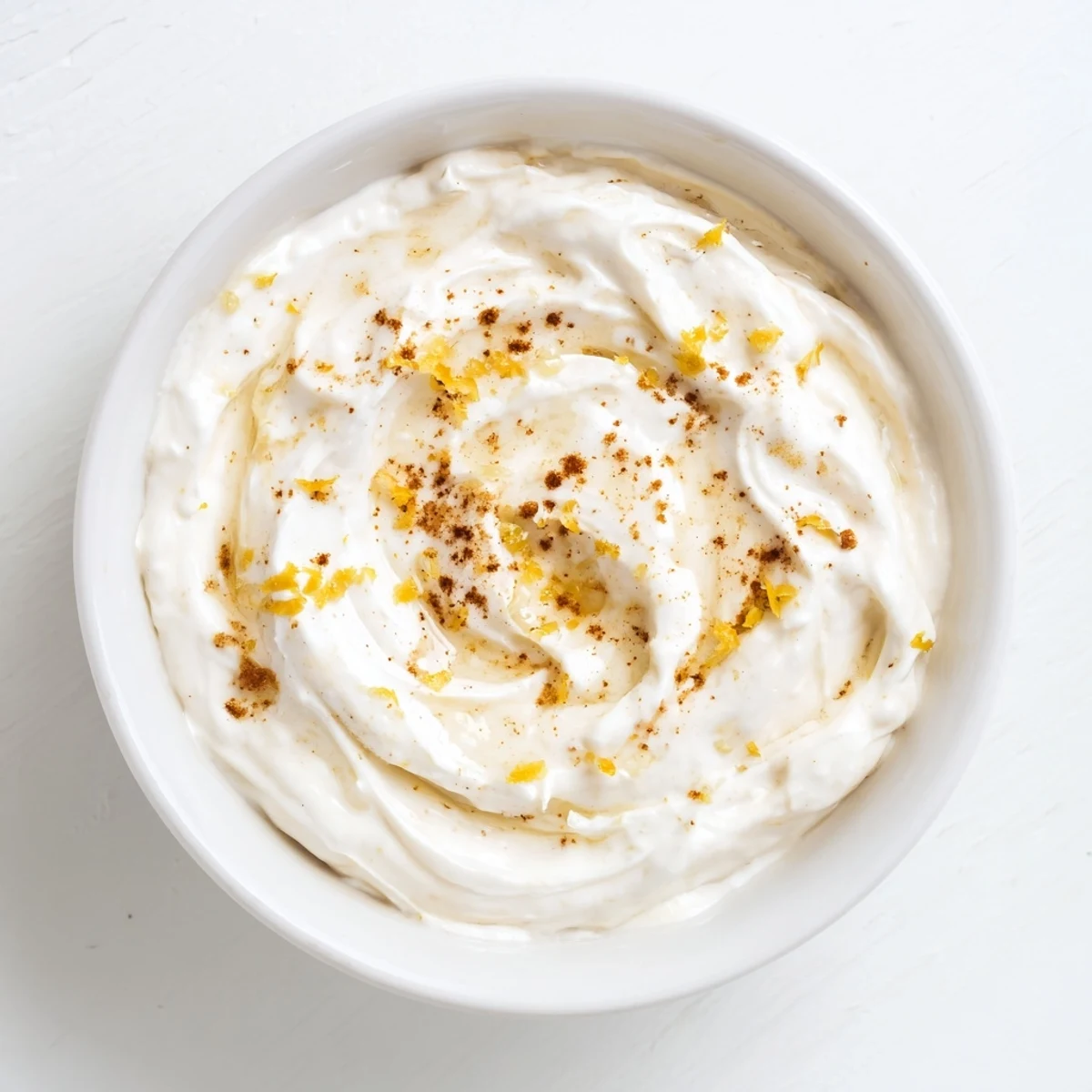- In a medium bowl, combine the yogurt, honey, vanilla, cinnamon, lemon zest, and lemon juice. Use a whisk and stir until it's silky smooth with no streaks of honey left behind.