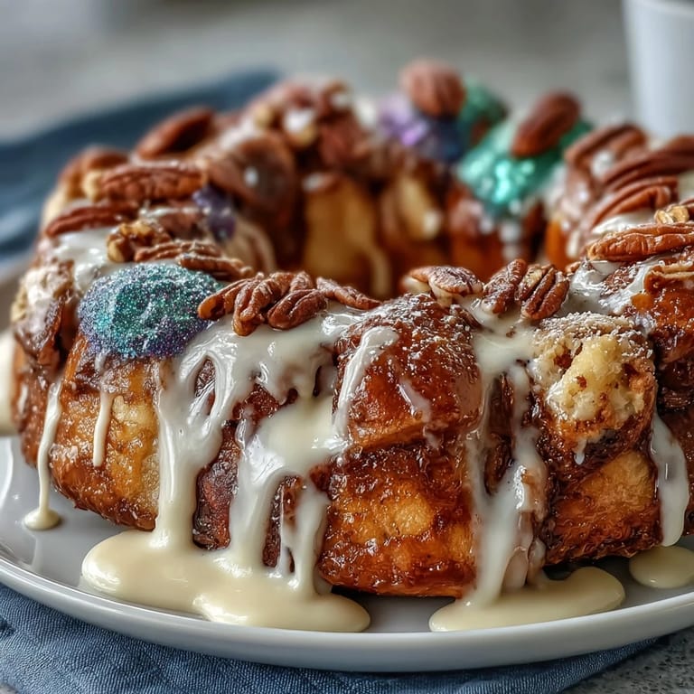 King Cake is a New Orleans institution, traditionally served during Mardi Gras season, and it carries this wonderful mix of French pastry tradition and Southern excess. When I first tasted an actual King Cake in New Orleans, I was struck by how celebratory and a little bit chaotic it felt—purple, green, and gold everywhere, everyone talking with their mouths full, nobody caring about crumbs. I wanted to capture that spirit in something I could make at home, and this monkey bread version does exactly that. It's festive without being pretentious, elaborate without being fussy.