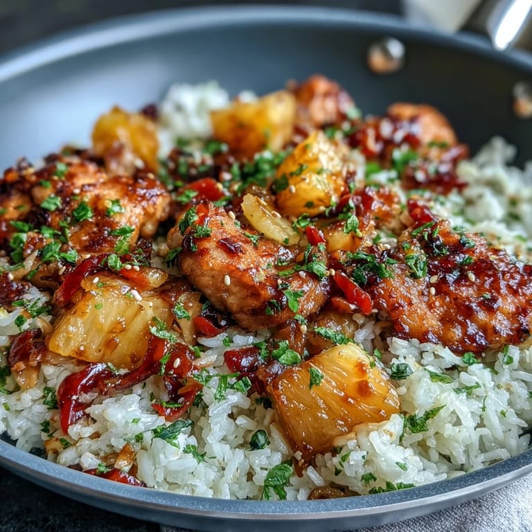 Pin There's something about the sizzle of chicken hitting a hot skillet that pulls me back to a Tuesday evening when my neighbor stopped by with a bag of fresh pineapple from her farmers market trip. We stood in my kitchen tossing ideas around, and somehow we landed on mixing that tropical fruit into a one-pan rice dinner. What started as improvisation became something I've made dozens of times since, each time feeling a little less like cooking and more like a familiar conversation with an old friend.