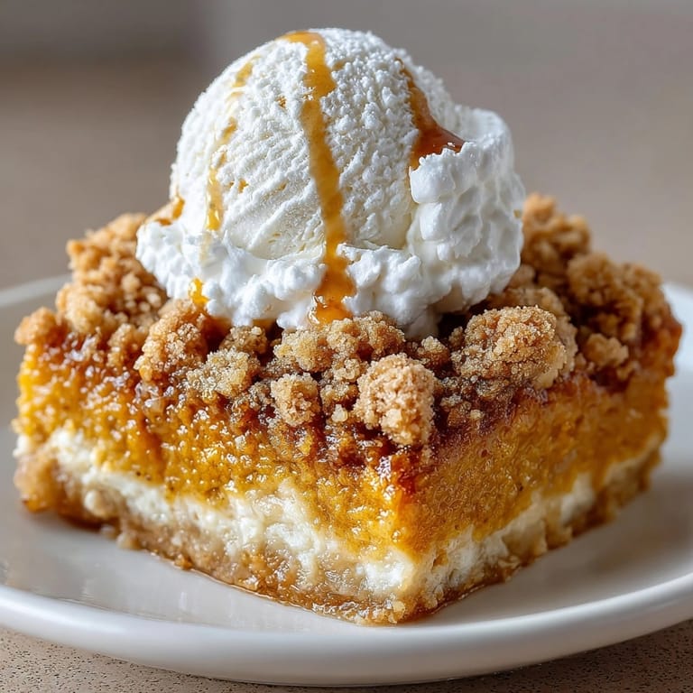 Inspired by classic pumpkin pie recipes this dessert swaps the typical pastry shell for a crumbly streusel like a cross between pie and crisp It offers the best parts of autumn baking but without rolling dough The combination of spices pumpkin and sweet crumb topping captures everything I love about fall desserts