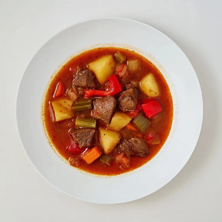 Pin A hearty, robust stew featuring tender beef simmered with smoked paprika, garlic, and vegetables perfect for comforting meals on a budget.