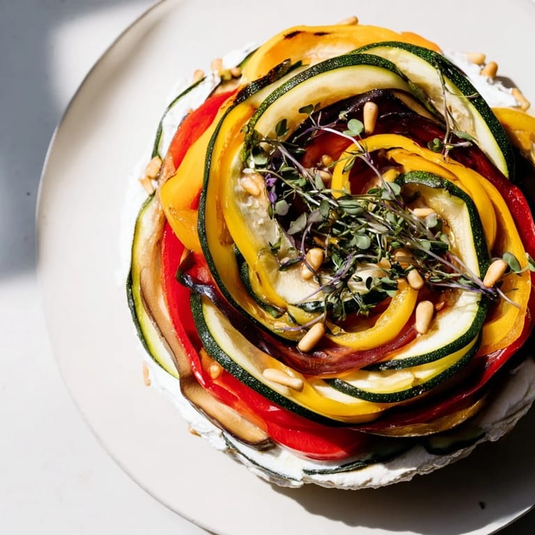 I remember preparing this for a summer lunch with friends who always worried about being "too much trouble." When I casually plated this elegant spiral while chatting and laughing, they realized that beautiful food doesn't have to mean complicated food. One friend even asked for the recipe, and I loved telling her that the magic was really just in the arrangement—in taking simple vegetables and treating them with intention.