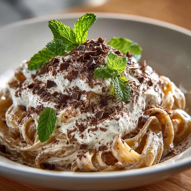Pin This unique pasta dish transforms the beloved Italian dessert into a savory yet sweet main course. The silky tagliatelle noodles swim in a luscious coffee cream sauce, creating an unexpected culinary experience that delights both pasta lovers and dessert enthusiasts. The contrast of creamy mascarpone with bitter coffee notes and dark chocolate creates a sophisticated flavor profile that will surprise your dinner guests.